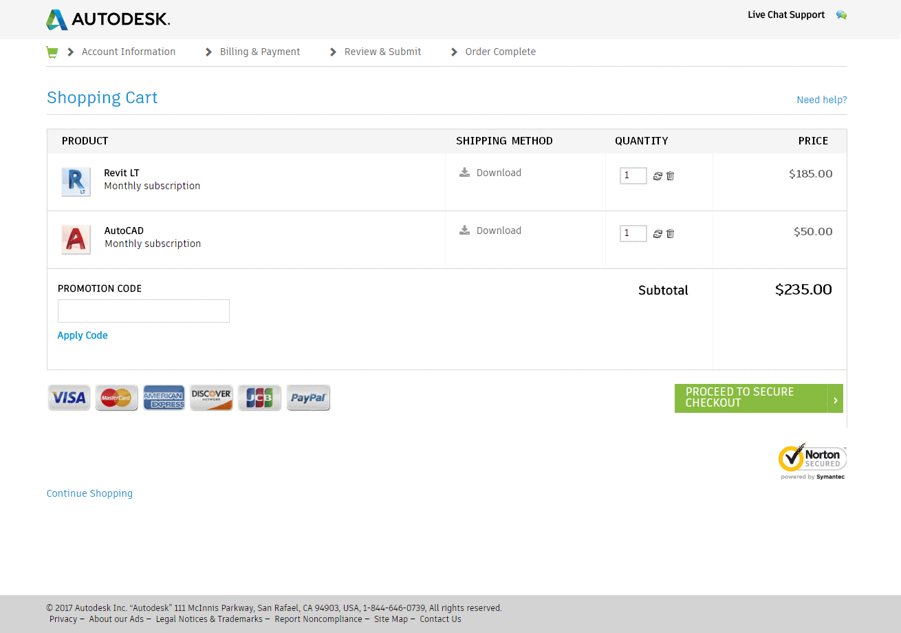 Same UX for both Autodesk and external hosted carts (Digital River)